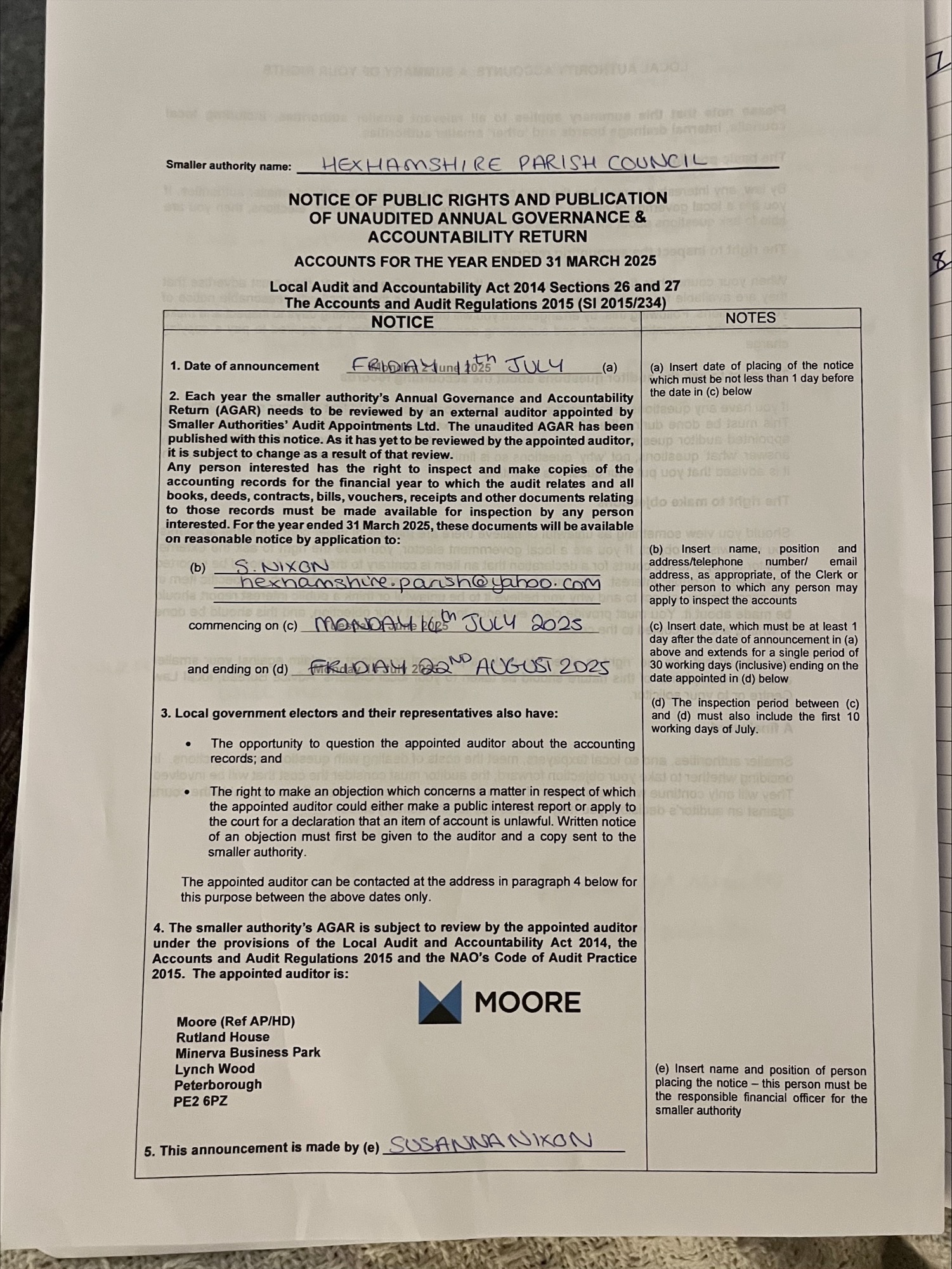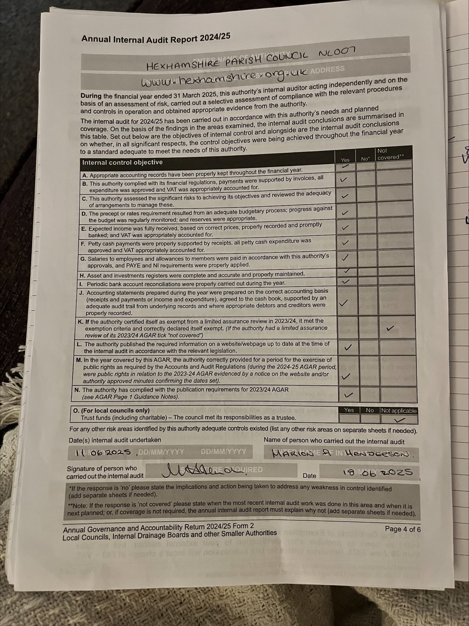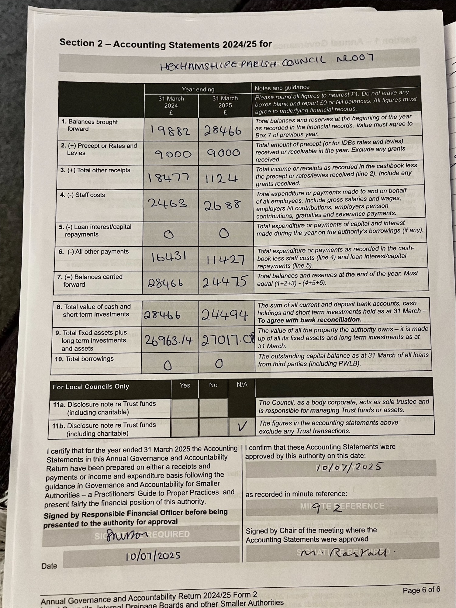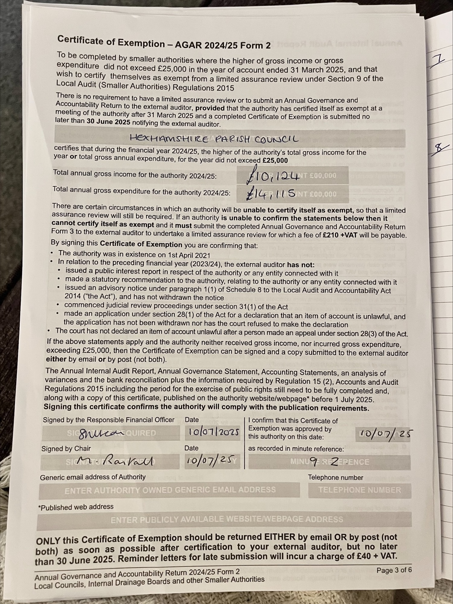 2024-25 | Accounting Statements 2024 – 25 Annual internal audit report 2024 – 25 Annual governance report 2024 – 25 Final reconciliation summary 24 – 25 Variance Report 31 March 2025 Certificate of Exemption 31 March 2025 Notice of Public Rights and Publication of unaudited accounts 2024 – 25 |